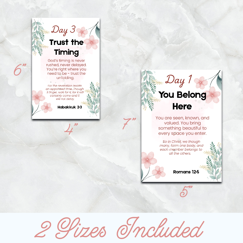 Rush Week can be intense—filled with excitement, uncertainty, and big emotions. These cards offer gentle reminders of God’s presence, purpose, and peace through it all. Each card features a thoughtfully chosen Bible verse paired with a supportive message to help her feel grounded, confident, and loved.